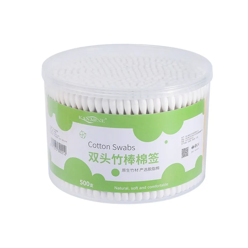 500 Count Bamboo Cotton Swabs - 99% Pure Cotton, Double-Headed, Fluorescent-Free, Tightly Woven for Daily Care